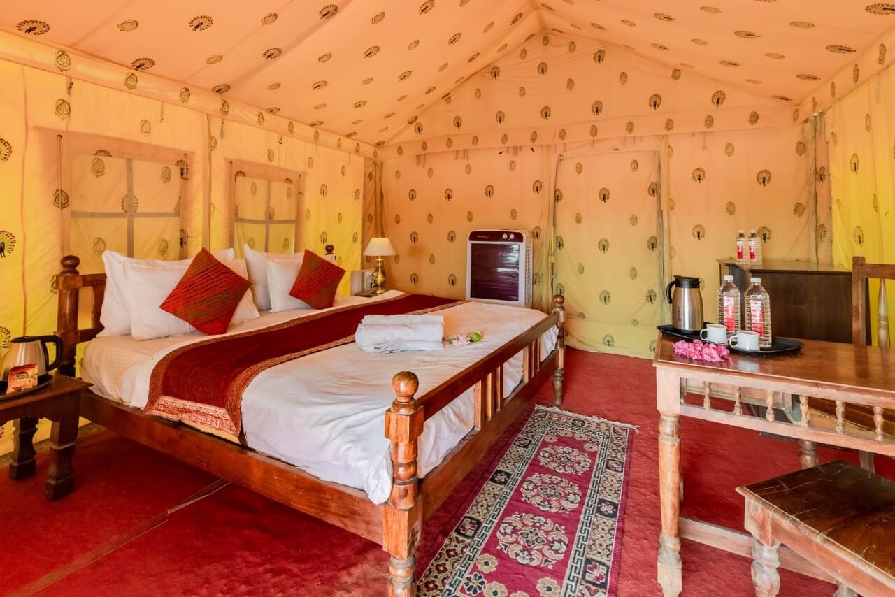 Located close to the iconic Sam Sand Dunes, our Deluxe Swiss Tents allow you to enjoy the beauty of the desert while staying connected to essential comforts. Each tent is crafted in a traditional Rajasthani style, giving you a true cultural feel with the warmth of desert hospitality.
