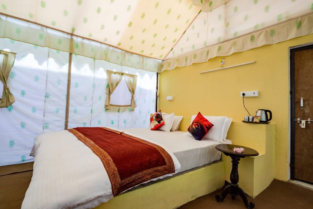 Located near the iconic Sam Sand Dunes Jaisalmer, the Luxury Swiss Tent gives you easy access to thrilling activities such as camel safaris, jeep safaris, quad biking, and parasailing. You can spend your evenings enjoying vibrant cultural programs with folk dance and music, followed by a delicious Rajasthani buffet dinner served around a bonfire. The magical experience of dining on the dunes while watching traditional performances makes your stay even more special.